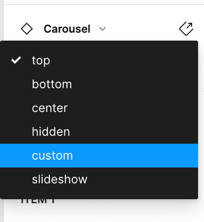 To begin customizing your instance of ⬦Carousel, click the dropdown menu next to 🄵 controls and select “Custom”.