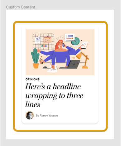 The options found under 🄵 content type represent specific content patterns commonly found across washingtonpost.com. These “organisms” are in fact, unique sub-components that are maintained in their own dedicated Figma library (ie Pattern Kit), which lives outside of the core WPDS UI kit.